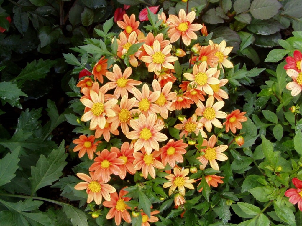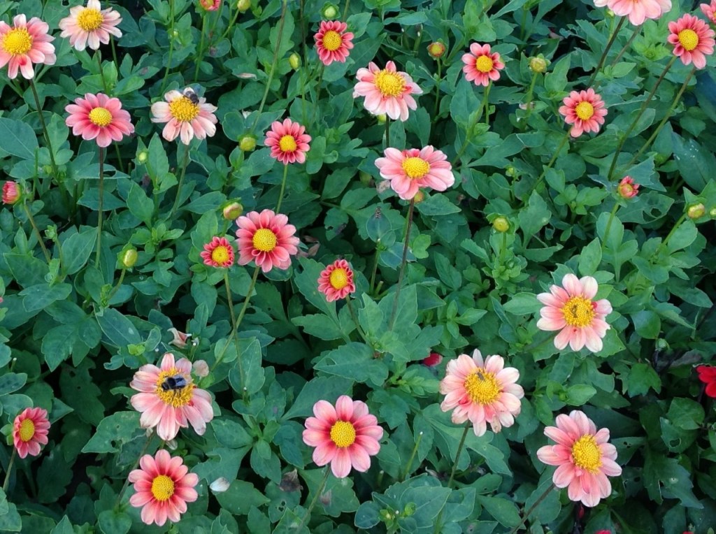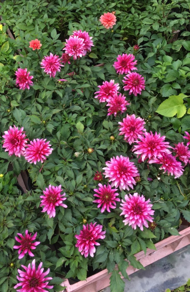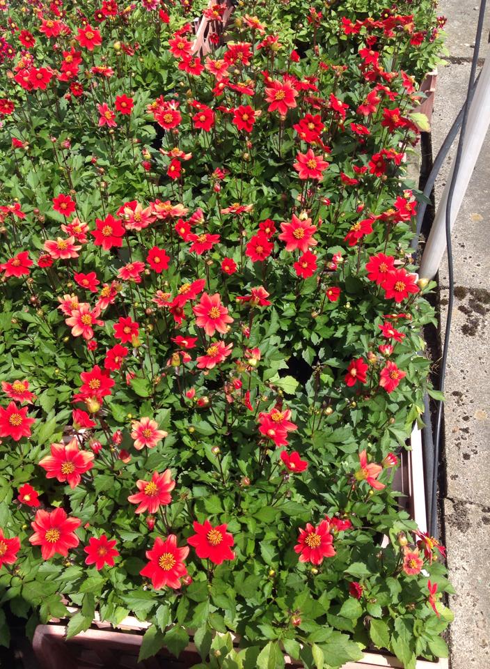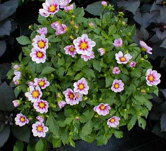 Patio dahlias are ideal for patio and tubs. Also, all open centre type dahlias are good for the bee population.