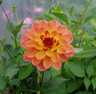 Another well contrasting coloured dahlia, with orange and yellow blends.