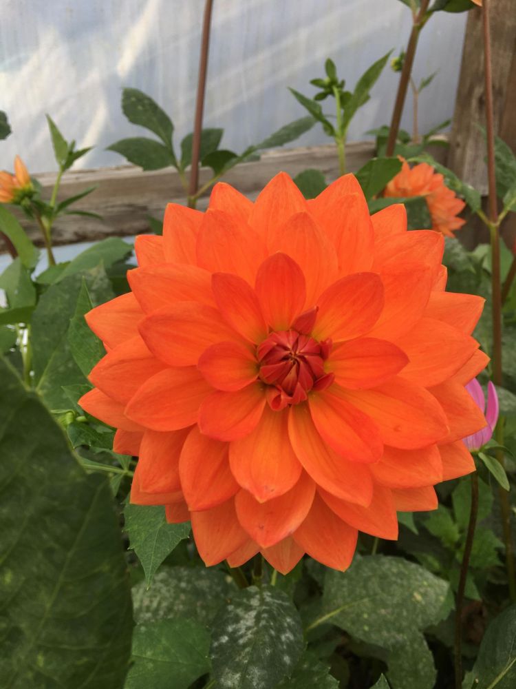 This dahlia has a nice contrast of orange and yellow colours.